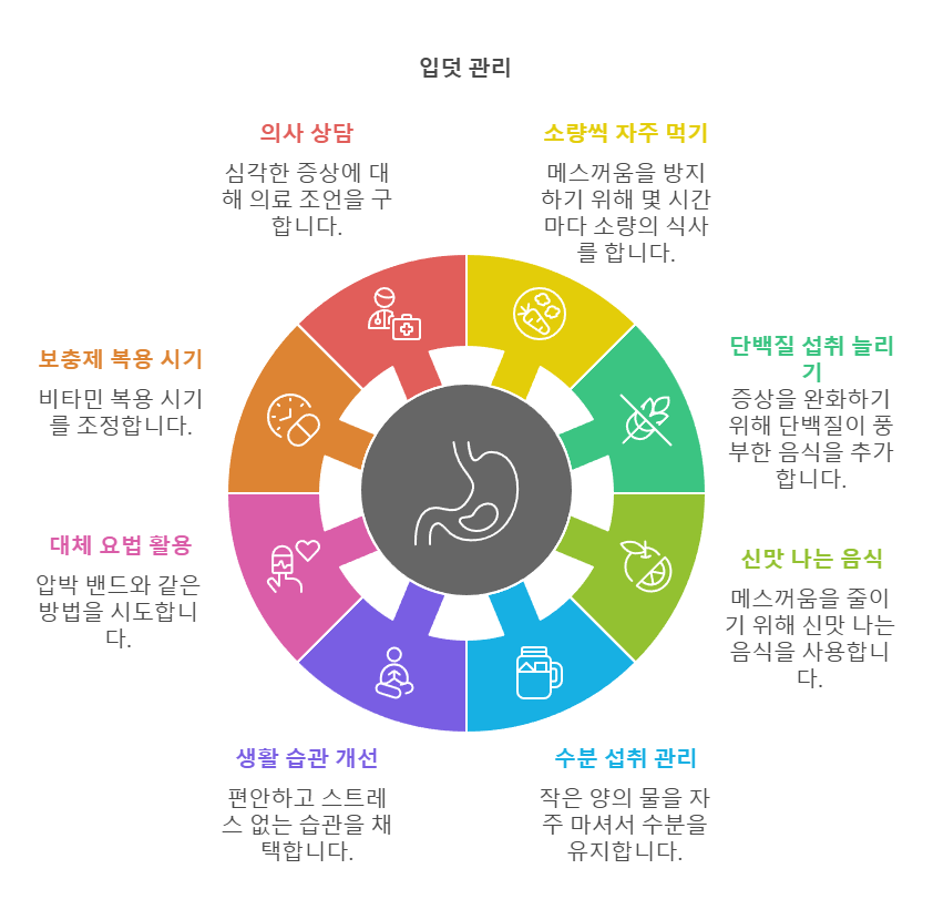 입덧은 대부분의 임산부가 겪는 자연스러운 과정이지만, 생활 방식을 조금만 바꾸면 훨씬 더 편안하게 극복할 수 있습니다. 위에서 소개한 팁들을 실천하면서 자신에게 맞는 방법을 찾아보세요.만약 증상이 심각하거나 지속된다면 반드시 전문의와 상담하시길 권장합니다. 건강하고 행복한 임신 기간 보내세요!